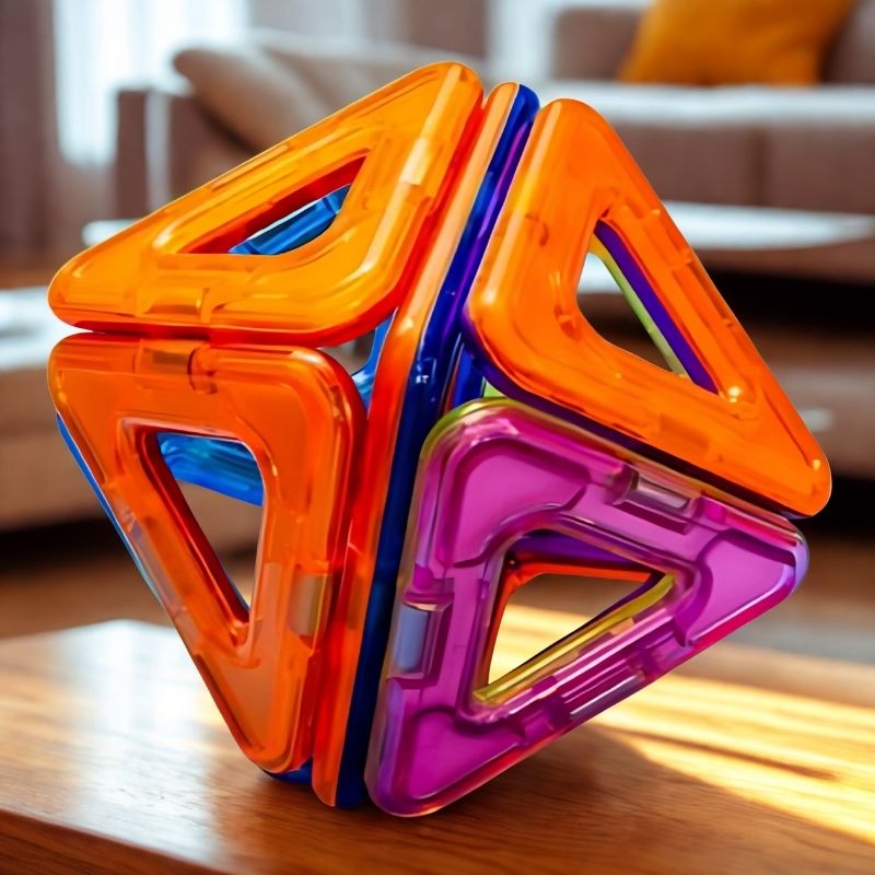 Grâce à notre jeu de construction magnétique, votre enfant développe sa motricité fine en manipulant les carrés et triangles.
